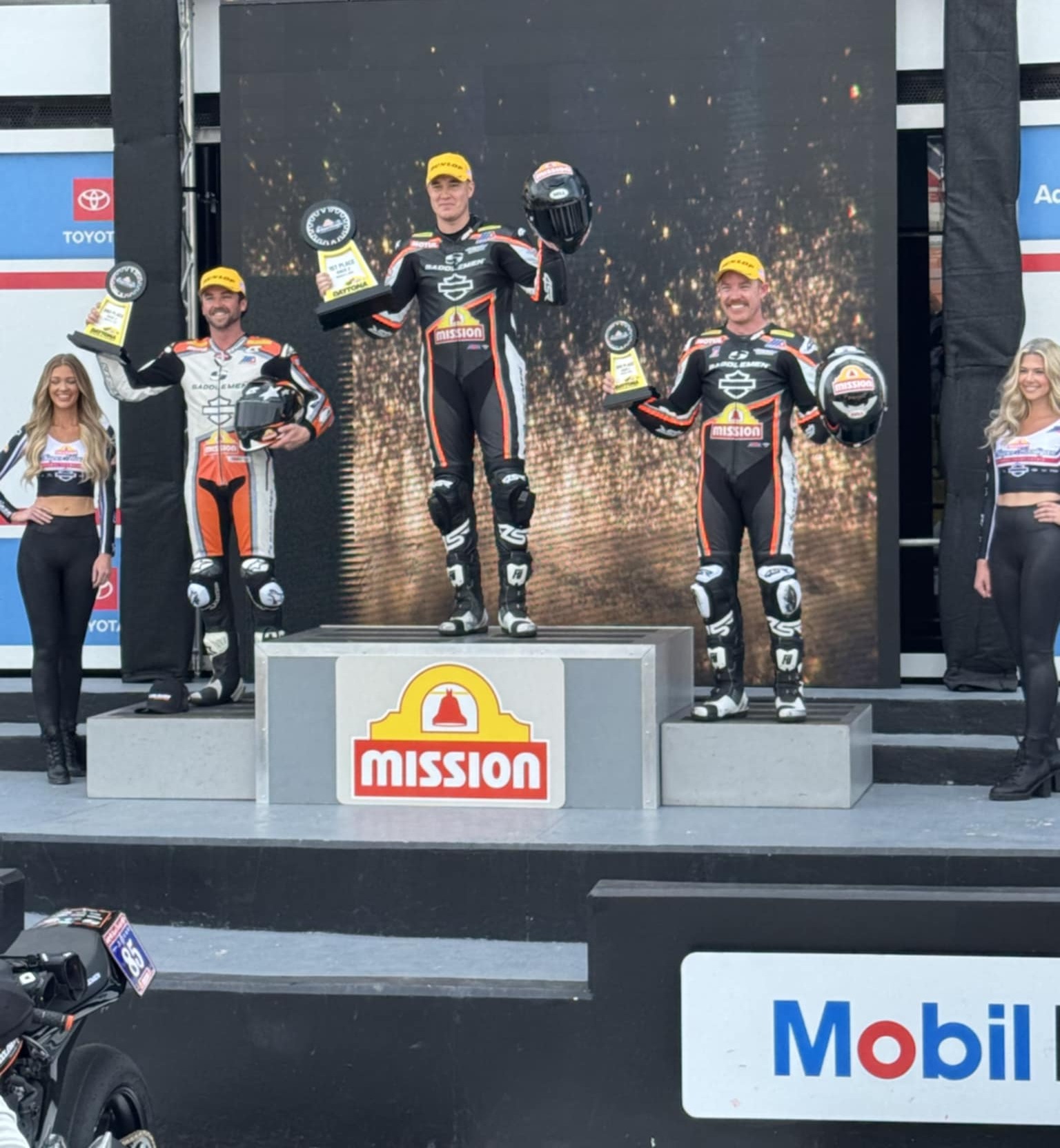 Team Saddlemen made racing history by sweeping all three podium positions in the Daytona SuperHooligan race! No motorcycle racing team has ever accomplished this before. In Friday's Race 1, Team Saddlemen riders Cory West scored first place, and Travis Wyman scored second place. In Saturday's Race 2, all three Team Saddlemen riders - #85 Jake Lewis, #10 Travis Wyman, and #1 Cory West - scored all podium positions 1-2-3, respectively.